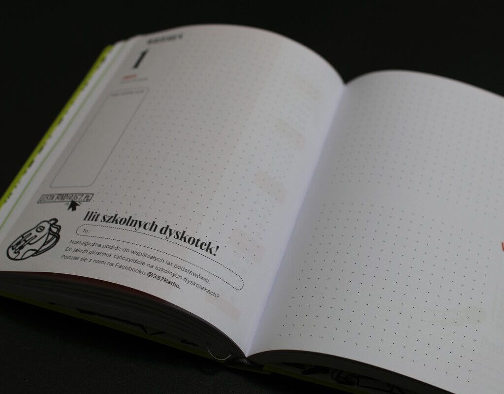W ramach naszej współpracy z Radiem 357 zaprojektowaliśmy i wydrukowaliśmy całoroczny kalendarz, dedykowany ich wiernym słuchaczom. Od początku naszym wspólnym zamierzeniem było stworzenie produktu unikalnego, który byłby dostępny jedynie w sklepie internetowym Radia. Każdego roku na rynku dostępnych jest wiele kalendarzy, które powielają te same banalne szablony. Nasz projekt w założeniu miał być doskonałą formą zabawy i inspirować słuchaczy do codziennych interakcji z Radiostacją.