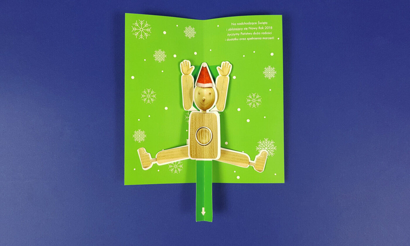 Sercem tego direct mailingu była kartka świąteczna 3D z ruchomym pajacykiem, przygotowana z dbałością o każdy szczegół. Duże wyzwanie stanowiła drobiazgowa konfekcja. 100 % ręczna robota, a efekt niebagatelny. Utkwi w pamięci na długo.